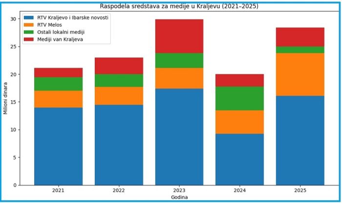 Grad Kraljevo je, dakle, na medije potrošio 23 miliona dinara 2024. godine što je, praktično, nivo 2021–2022. godine.