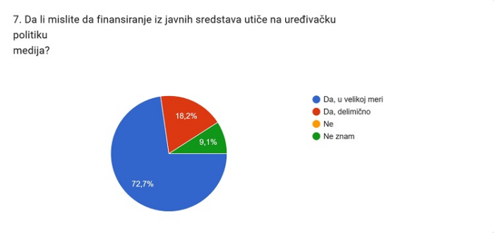 Iako broj anketiranih ne omogućava izvođenje reprezentativnih zaključaka za čitav grad, rezultati su relevantni kao signal, posebno zato što pokazuju dosledan obrazac stavova o transparentnosti, koncentraciji sredstava i uticaju finansiranja na uređivačku politiku.