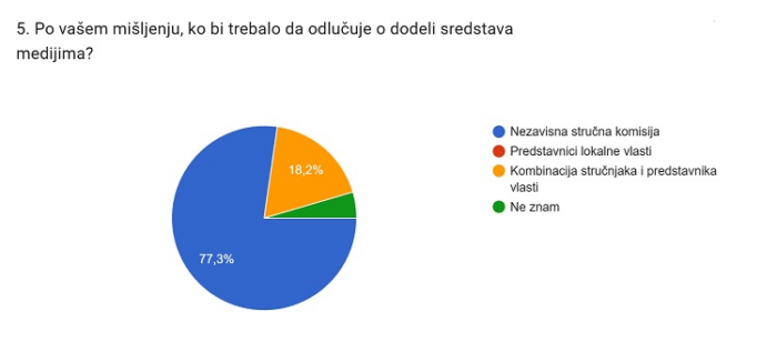 Na pitanje da li znaju na koji način se lokalni mediji finansiraju, 31,8 odsto ispitanika navodi da zna u potpunosti, dok 40,9 odsto kaže da zna delimično. Međutim, 22,7 odsto je čulo nešto, ali nije sigurno, a deo ispitanika uopšte nema uvid u sistem.