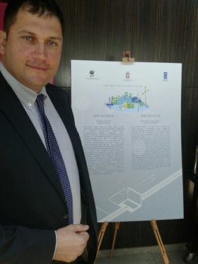 Žarko Petrović iz UNDP za Srbiju kraj panoa grada Kraljeva