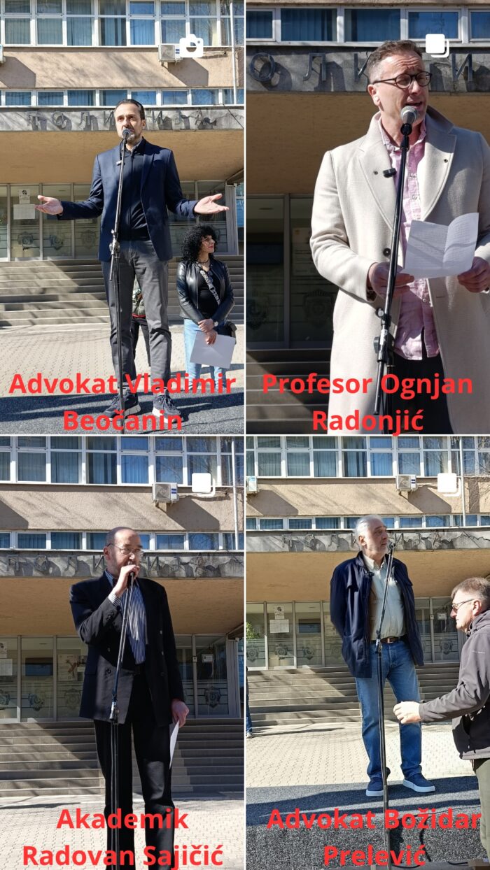 Posle intoniranja himne, održano je 16 minuta tišine za nastradale pod nadstrešnicom u Novom Sadu, 1. novembra 2024 a potom su im se sa improvizovane bine ispred Policijske uprave obratili: Vladimir Beočanin,advokat ulapšenih veterana,profesor Filozofskog fakulteta u Beogradu Ognjen Radonjić,akademik,profesor Hemijskog fakulteta u Beogradu Radovan Sajičić i advokat Božidar Prelević iz Beograda.
